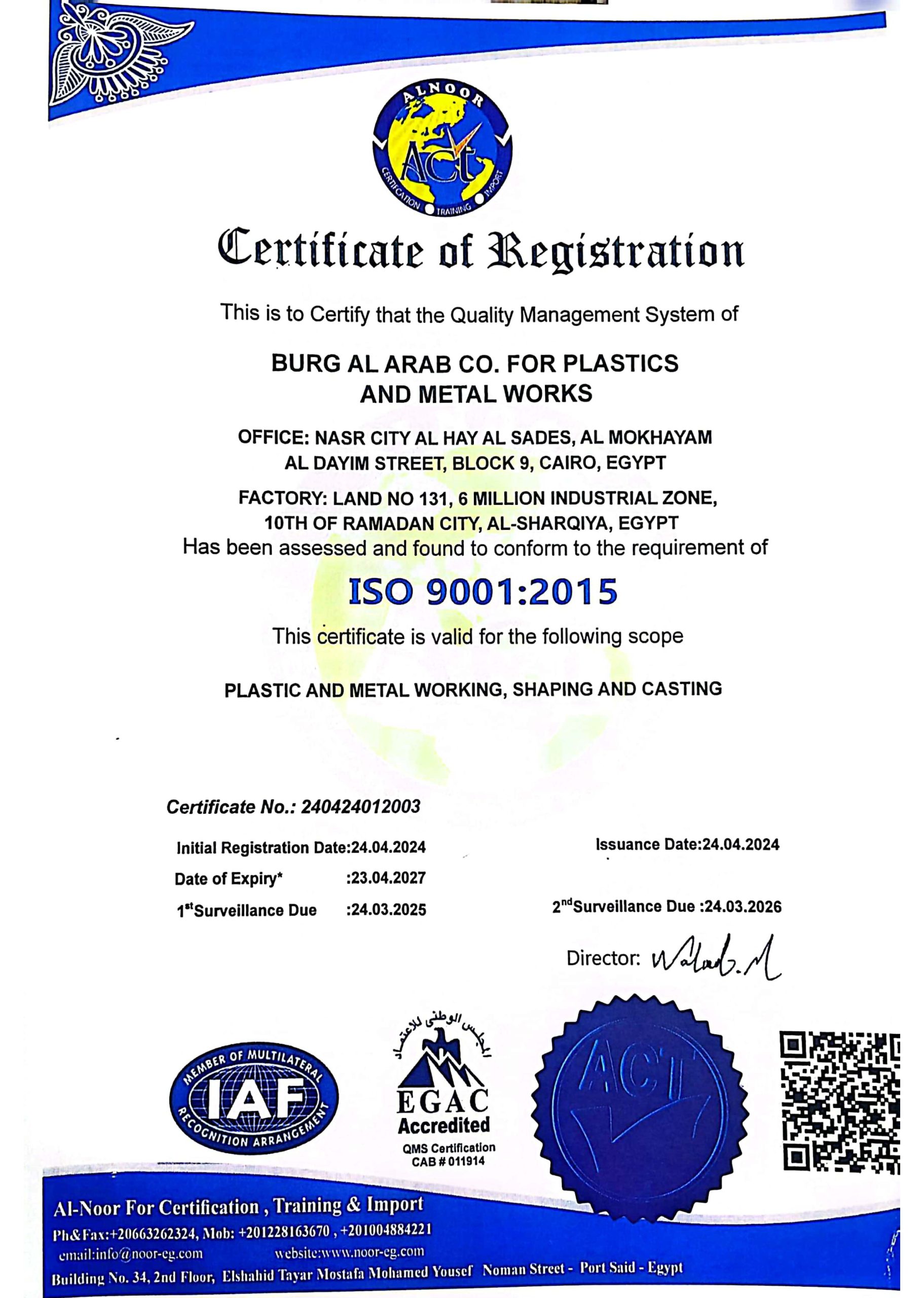 تتوافق منتجاتنا مع جميع المواصفات القياسية المصرية BC. 4207/2003، مما يضمن لك أعلى مستويات الأمان والأداء